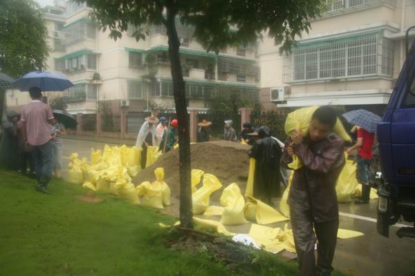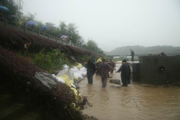 6月19日,连续的暴雨致使马金溪华埠段水位直线上升。上午10点,河水没入华埠镇江东新区江滨健身广场。由于上次洪水的冲击,再加上不断上涨的河水的洗刷,江东新区江滨路防洪堤坝出现险情,如不及时处理后果将不堪设想。
