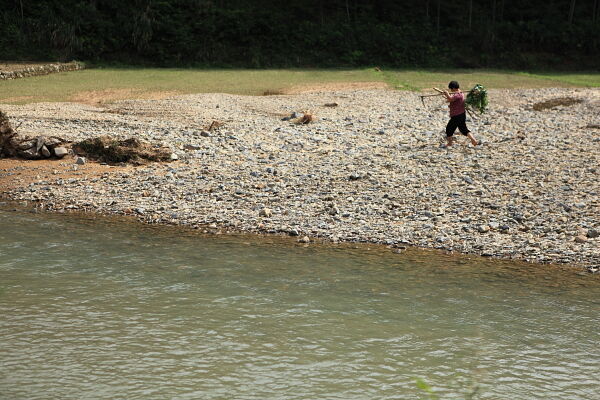 塘源口村,村民从曾经的农田走过