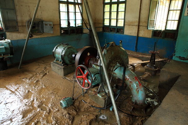 林山乡溪口电站,两次大水让电站厂房大面积进水,水淹高度近2米,造成机组全线停机,设备损坏严重。水利局专家立即开展现场诊断,迅速制定抢救方案。在派人清除大量淤泥沙石的同时,拆开机器设备,进行现场维修,排除故障,目前机组发电能力在进一步恢复中。