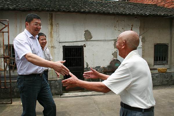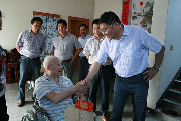 “方老,近来身体好吗?”一跨进华埠镇金星村毛家坎建国前老党员方德洪家里,毛建民快步上前,与方德洪紧紧握手,送上问候。方德洪今年86岁,1948年加入中国共产党,曾参加过解放战争,建国后复员回乡担任过村干部。毛建民兴致勃勃地聆听方德洪讲述解放战争时期的革命故事,动情地说:“方老,你为中国解放事业和社会主义建设事业作出了很大贡献,党和人民感谢您。今年是建党90周年,在党90岁生日即将到来之际,我代表县委和镇、村干部一起来看望您,祝您健康长寿!”毛建民递上了慰问金,送去了诚挚的祝福。