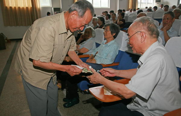 6月29日下午,开化县城关镇荷花社区在县老年大学举行建党九十周年庆祝活动,来自社区的151名党员和部分入党积极分子参加。一些党员利用活动的机会缴纳了党费。