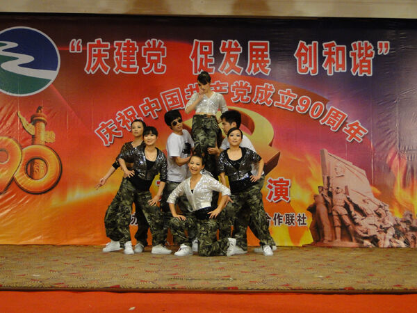 为庆祝中国共产党成立90周年,6月30日晚,开化县农村信用合作社联社举行庆祝建党90周年文艺晚会,近百名干部职工表演了歌蹈、小品、诗朗诵等文艺节目,表达了对党的热爱。