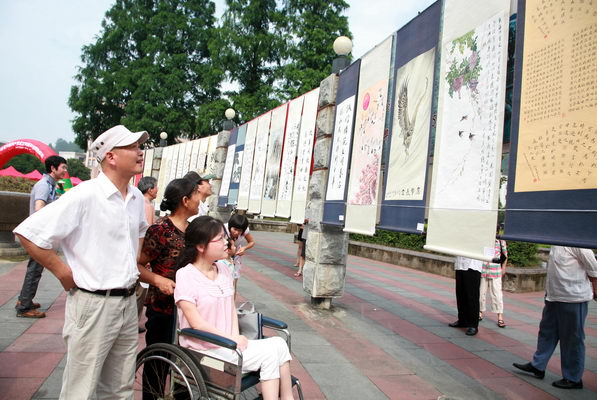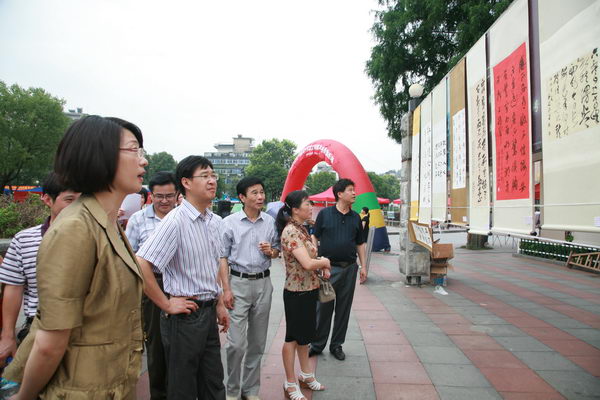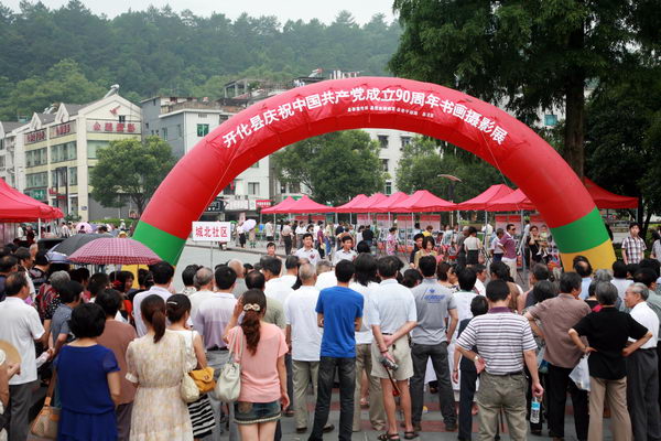 7月1日上午,由开化县委宣传部、县委老干部局、县委党史研究室、县文联共同举办的庆祝中国共产党成立90周年书画摄影展,在县城荷花广场举行。