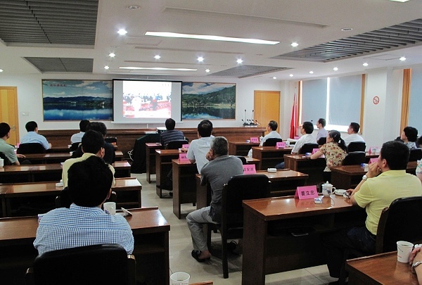 图为县四套班子领导、副县级领导在集中收听收看庆祝中国共产党成立90周年大会