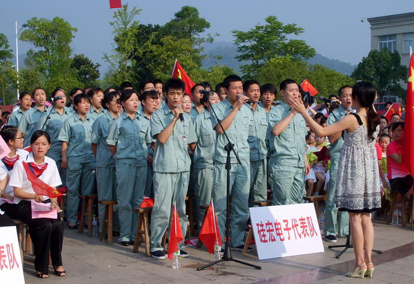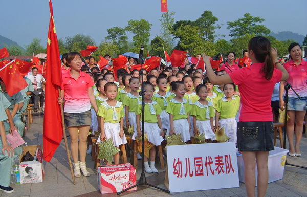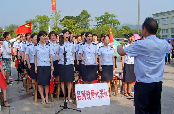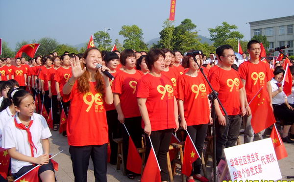 7月5日上午,开化县华埠镇市民广场上歌声嘹亮、热闹非凡,“永远跟党走”——华埠镇纪念建党90周年红歌大赛正在这里举行,来自县财政局、华埠镇政府、华埠镇社区、硅宏电子、华埠镇初中、华埠镇幼儿圆等6支代表队近500余人欢聚一堂,一起唱红歌、颂党恩,为党的90华诞献礼。