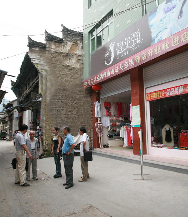 华生龙(左二)说,这里就是当年的马金自新人员登记处旧址所在地。
