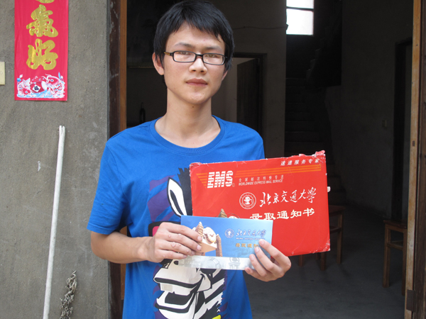 7月24日,开化县马金镇霞田村的汪志君收到了北京交通大学机械与电子控制工程学院录取通知书。然而,握着梦寐以求的通知书,汪志君有些惆怅。虽然高考一结束,他就外出打工,但赚来的1000多元钱对于5500元的学费来说只能是杯水车薪。