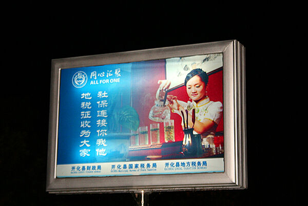 8月13日晚,记者在开化县岙滩新区看到,一幅幅以开化龙顶、举重、广场等人文特色为背景,上书“同心汇聚 地税增收为大家 社保连接你我他”等税收宣传标语的公益广告,沿着开元路中央的绿化带,一直延伸到岙滩新村处的红绿灯路口,给岙滩新区的交通通行主干道增添了一条醒目而又靓丽的夜间风景线。