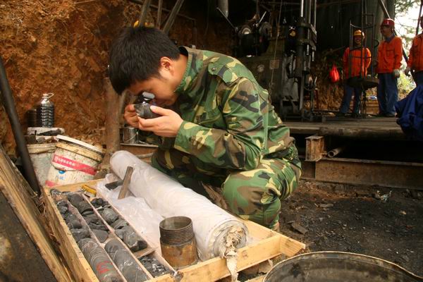 岩心取出后,队员们开始进行对每块岩心进行初步识别,然后再编录。章国庆说他们的工作在常人看来十分枯燥,但找到矿石时的兴奋使他们依然热爱自己所从事的事业。
