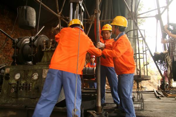 钻探工人们正在找岩心