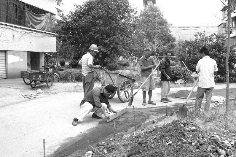 8月4日上午,记者在南湖小区看到,几名市政施工人员正在对小区内破损的园步道进行修补。据了解,为了进一步改善县城老旧居民生活小区的居住环境,提高城市绿化品位,日前,南湖小区绿化整治工程正式启动。
