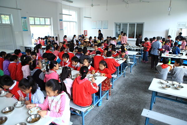 因为这里地处偏远山区,学生们的家距离学校路途较远,最远的差不多有10公里的山路,住校生只得腌菜下饭,但长时间吃腌菜味道不好而且没有营养。今年9月1日,在长虹乡党委、政府的帮助下,学校开始实施“爱心餐桌”行动。至此,虹军小学的学生们终于可以餐餐吃上新鲜可口、热腾腾的饭菜,这不仅解决了学生们的营养问题,也让家长们很满意,学生们也特别开心。