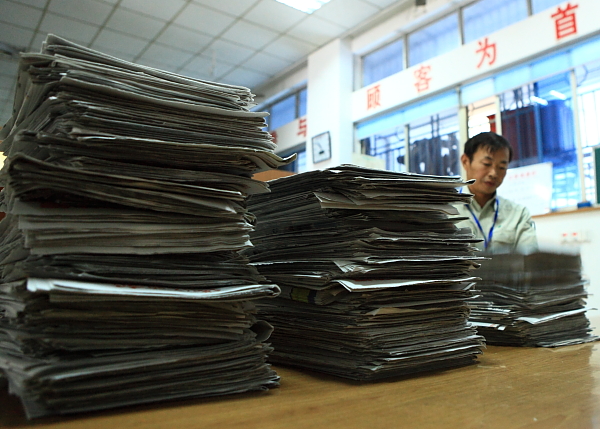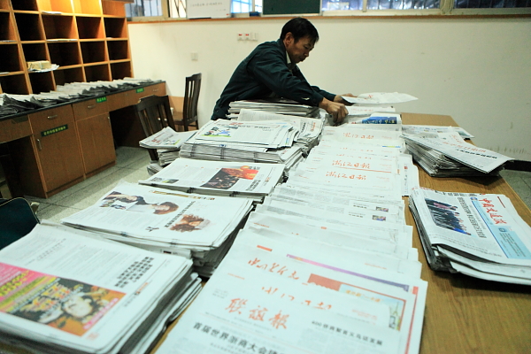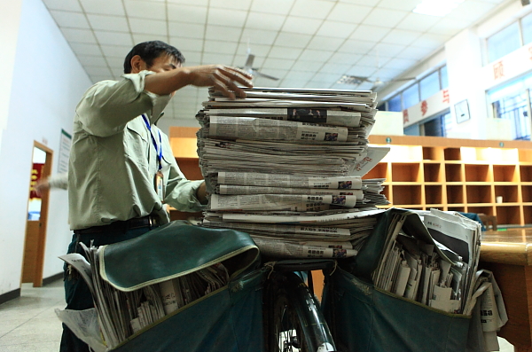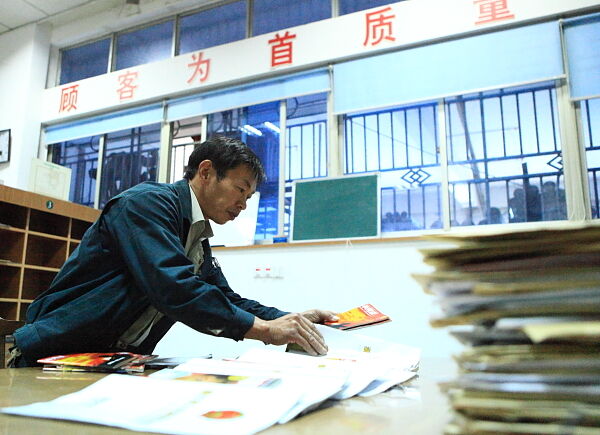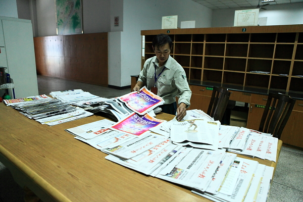 每天的排报工作相当繁琐,近1300份报纸和杂志,在老郑的手中按部就班,整齐码好。有人问:“这么多单位,这么多报纸,你都不用笔做个记号,能记得住吗?不会分错吗?”“每天都要分发一遍,心里早就记住了,不会错的。”据说,从未有客户投诉老郑发错过邮件。