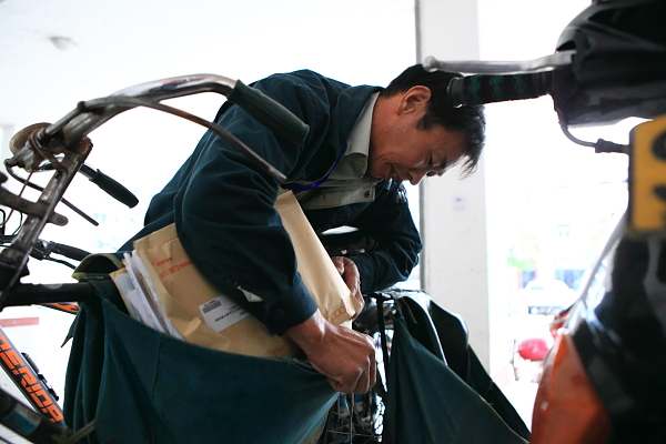 郑松良今年只有47岁,但大家习惯叫他“老郑”。他在邮政投递员这个行业已奔波了十一载。