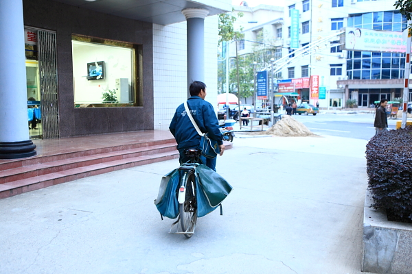 早就听说开化县邮政局里还有个骑着单车投送信报的投递员。10月30日,记者来到了开化县邮政局投递中心,见到了这位叫郑松良的投递员,用镜头记录了他平凡而又充实的“邮”行日记。
