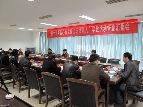 12月13日上午,由衢州市委副秘书长、市直机关工委书记马燕带队的市委“做一个有爱心有责任心的衢州人”学教活动督查组一行,来开化县检查指导工作。县委副书记琚建军,县委常委、宣传部长杨苏萍陪同督查。