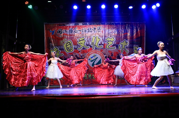 12月29日晚6时,零星小雨戛然而止,开化一中“展一中学子风采,创和谐校园文化”为主题的第二届校园文化艺术节暨第四届“美在大爱”迎新年元旦文艺汇演在学校操场举行。本次元旦文艺汇演师生们以小品、相声、歌舞、器乐演奏、快板、诗朗诵等丰富多彩的文艺形式,满怀激情地表达了对新年的美好祝愿。