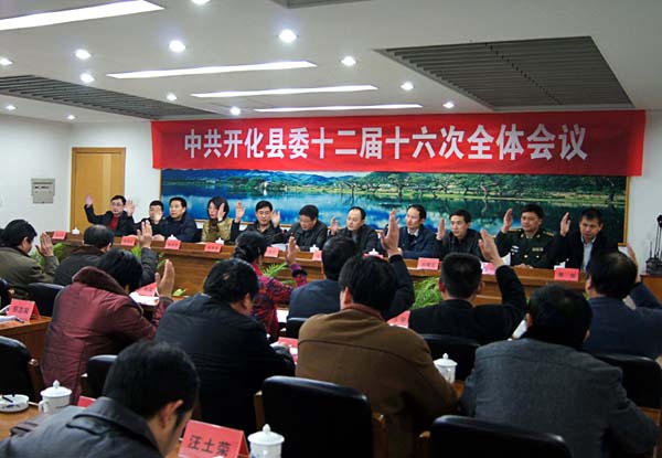 开化县委召开十二届十六次全体会议 审议通过县第十三次党代会县委工作报告(草案)、县纪委工作报告(草案)和县两委委员选举办法(草案)、开化县出席衢州市第六次党代会代表选举办法(草案)
