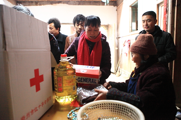 据了解,此次县红十字会在何田、塘坞发放的爱心物资有现金、羽绒被、大米、食用油、衣物、鞋子等,每户的受捐数额达到800元,共有50户困难群众受到捐赠。