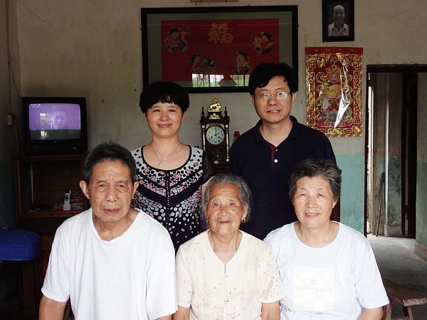 2011年暑假与老外婆、父母、姐姐合影于开化池淮乡航头村下童家