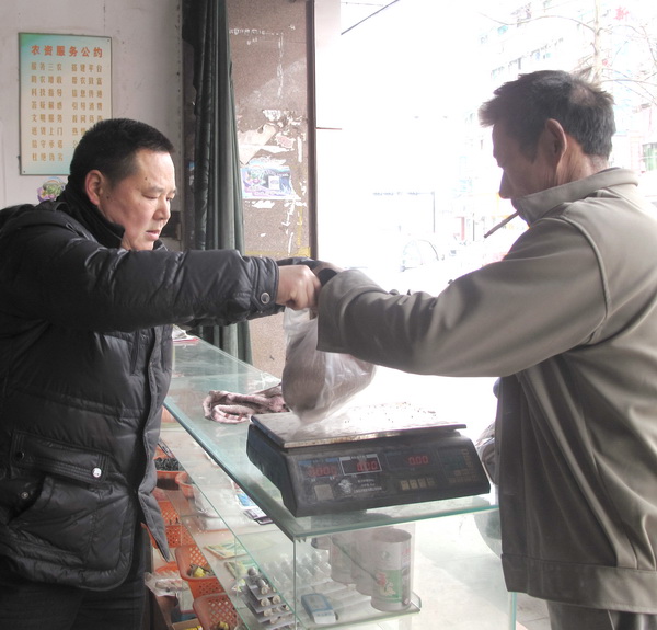 在一家专营化肥、种子的农资店里,记者看到,各种农资已经摆满了货架,仓库里也堆满了各种种子、肥料等农资产品。一名销售员正忙于向前来购买种子的农户介绍各种化肥的优点。
