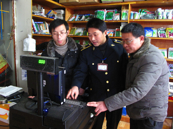 “农户来到本地农资商店,挑选几包农药后,拿出一张‘会员卡’交给店主。店主在POS机上扫描后,再输入所选农药条码和数量,收钱,找钱,打印小票,几分钟就可完成全部实名制交易,就像进超市购物一样方便。” 2月15日,开化县农业行政执法大队的工作人员指着刚刚给农资店主安装好的一台高性能PC一体式POS机,耐心地向店主介绍了新装机器的特点。