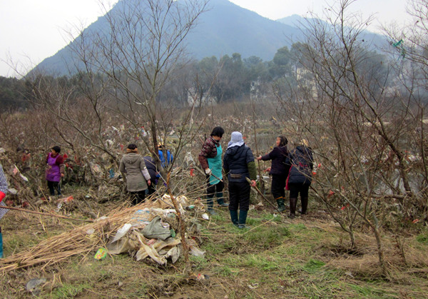 “今年是县农村清洁工程的推进年,马金镇为让全镇人民拥有一个优美整洁的生活环境,在3月12日至19日开展了全镇统一的卫生大整治活动,并将于3月20日派出四个督查组对各村大整治情况进行检查。我们想在督查前把辖区范围内所有路面、河道、住宅区、卫生死角等再清理一次,以最好的面貌接受检查。”村支书姚文君介绍,近年来村里的环境卫生状况大有改观,村里配有三名专门的保洁员,每天都会对河道、村道、公厕等地进行清理,实行的“门前三包”制度也得到了村民的认可,大家都自觉维护环境卫生。