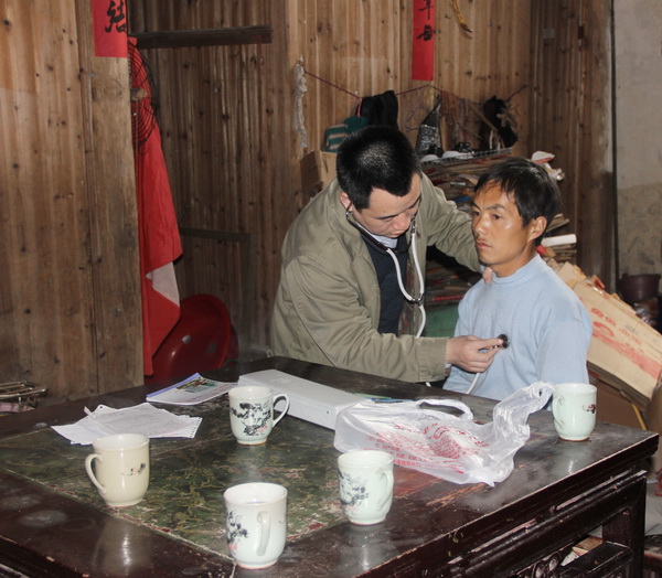 詹启开今年45岁,患有严重的支气管扩张,到几家医院诊治却一直不见好,家中也花掉了不少钱。齐溪镇党委书记程军华在江源村开展进村入户摸实情过程中,了解到詹启开的病情后,立即与在浙二医院工作的开化籍医生丁礼仁博士联系。丁医生获悉此情况后,便迅速安排时间回开化上门义诊。在詹启开家中,丁医生仔细查看了詹启开的病历,给他做了初步检查,提出了下步的治疗建议,并送上了随身携带的药品。