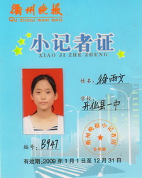 2012年6月11日傍晚,杭州。 两双长满老茧的手,在“人体器官捐献书”上郑重地签上了自己的姓名。心在滴血,手在颤抖,但义无反顾。来自钱塘江源头开化的农民一家子,没有豪言壮语,甚至也没多想什么。捐赠遗体完成女儿“回报社会”的心愿——一个朴素的纯洁伟大决定就这样诞生:他们要把对女儿的爱留在这个世界上,让他人从痛苦中解脱。 一方水土养育一方人,美丽的钱江源养育了“最美一家人”。 先让我们记住“最美一家人”中这个阳光善良的女孩——徐雨文。 家人眼中的雨文:乖巧懂事 音坑乡对门村,一个宁静的山村。徐雨文的父母,一对老实巴交、近乎木讷的农民,在谈到女儿时,不禁泪流满面。 “我的女儿太乖太乖了,从小到大几乎没让我们操过心,哪怕她以前做过一件不懂事的事情,我的心里恐怕也会好受些。”和记者说起女儿,母亲哽咽不已,泪水涟涟。 穷人的孩子早当家。母亲说,家里条件不好,文文从小就特别体谅父母劳动的艰辛,从不问家里要零花钱。11岁时,文文就开始帮着家里洗衣、做饭,帮着干农活、带弟弟。去年暑假,家里造房子,文文每天一大早在烧好早饭、洗完衣服后,就去做来料加工。一个暑假挣了400多块钱,全部贴补了家用。 生病之后的文文依然是那么乖巧懂事。每次剧烈的疼痛和无休止的呕吐,足以耗尽精气神,但是文文表现得很坚强。她想尽量让父母少操点心,每次病痛发作,都尽量忍住不发出声音。“有时候,我们陪在床边睡着了,她也不叫醒我们,让我们知道后,她还说吐后感觉很舒服,叫我们不要担心。” 从2011年9月起踏上寻医问药之路,一家人不知受了多少的苦,遭了多少的罪。多少次,医生说别治了,没有转机的!多少次,医生说,回家吃药去吧,只能熬多久算多久!多少次,因为缺钱缺门路,一家人依偎在一起睡在马路边等待希望!面对着医生们一次次的死刑宣判,面对父母一次次以泪洗面,懂事的文文就会握着父母的手说:“爸妈,你们别哭,我能够忍住,如果你们再哭,我就不治了。” 在文文家中,记者看到了文文的老外婆。这个从小被外婆带大,家里有什么好吃的,总要给外婆留着一份的乖巧孩子的离去,让老人悲痛欲绝。聋哑的外婆一遍遍地抚摸着文文的遗像,看着文文生前的照片,捶胸顿足,咿咿呀呀地嘶喊,却无法诉说…… 老师眼中的雨文:富有爱心 开化中学,徐雨文生前只就读过11天的母校,老师、同学们对文文依然记忆深刻。“文文性格活泼开朗,很喜欢和同学、老师聊天,脸上总是洋溢着阳光般的笑容。她从不会因为家境贫穷而自卑、孤僻。” 初中班主任郑素珍老师说,每次周日晚到寝室签到,文文总是拉着老师说家里的事: “这个周末上山采茶叶赚了不少的零花钱”、 “我的弟弟很淘气,太难管教了”、 “我烧饭味道还不错,下次老师一定要来我家尝一尝。” 当郑老师得知她家庭经济状况较差,主动为她申请了营养餐补助,她竟然跑到老师办公室提出要把名额让给其他同学。“每次学校发动全校师生为‘爱心助困基金’捐款,文文也总是慷慨解囊,捐出自己的三五十元零花钱。学校成立红十字会,她又第一个报名参加。这孩子太善良了。” 同学眼中的雨文:热情细心 谈到文文,她的同学总是难以忘记那张始终保持着阳光、淳朴、善良的笑脸。“文文是个很细心的女孩,她总能记得我们宿舍每个人的生日,然后送上一份令人惊喜的礼物。”和文文做了9年同学的朱琳说,她总是能不经意间给小朋友们带来幸福和感动。 在高中11天的学习生活中,文文也给同学们留下了深刻的印象。在路上遇到同学,她总是热情主动地打招呼、说家常。在军训期间,看到疲劳的同学,还主动帮忙洗衣服、打饭、挂蚊帐。 有个叫汪盼尔的同学座位在文文后面,这个孩子常常因为家庭原因而自卑,脾气也很孤僻。但热情大方的文文总是主动和她说话,还邀请她到家里去玩。 “我以为自己不会有什么好朋友,从没想到会有这样一个真心的同学这样待我。”汪盼尔顽固排外的心顿时被消融了。原来文文为别人还改变了自己的喜好! 热心人眼中的雨文:坚强勇敢 文文生病以后,得到了很多好心人的帮助。文文的老师、同学、红十字会的志愿者、单车协会的成员,还有许许多多的陌生人。文文的坚强和勇敢让他们记忆犹新。 到北京看了中医之后,文文每个月都要喝着从北京寄回家的8000多元一个月的中药,每天要喝三大碗。闻着中药的苦涩味,母亲很是心疼。文文却微笑地和母亲说:“妈妈,我要喝下去,再苦也没关系的,等我的病医治好了,我还要上大学呢!” 小小年纪,面对病痛一次次的折磨,文文依然保持乐观向上的心态,很是激励同一个病房的病友,感染了每一个前来探望的好心人。病中住院的文文,每天坚持自己倒尿盆,到医院楼下跑跑跳跳,说要把身体锻炼好,等回校后尽快赶上同学。就在身体虚弱到需要父母搀扶着的时候,仍然强迫自己一遍一遍背诵着那些好心人的名字。她说,等自己的病好了,也要去帮助别人,回报社会…… 常常来看望小雨文的单车协会会长鲁民回忆道,春节过后,雨文因为病重,几乎失去了记忆,但她还会唱《感恩的心》,尽管只能记住几句歌词,但旋律还没忘记。 在初中的作业本上,文文用白话文书写着孟子《鱼我所欲也》中这样一段话:“鱼,是我所想要的;熊掌,也是我所想要的。两种东西不能同时得到,舍弃鱼而选取熊掌。生命