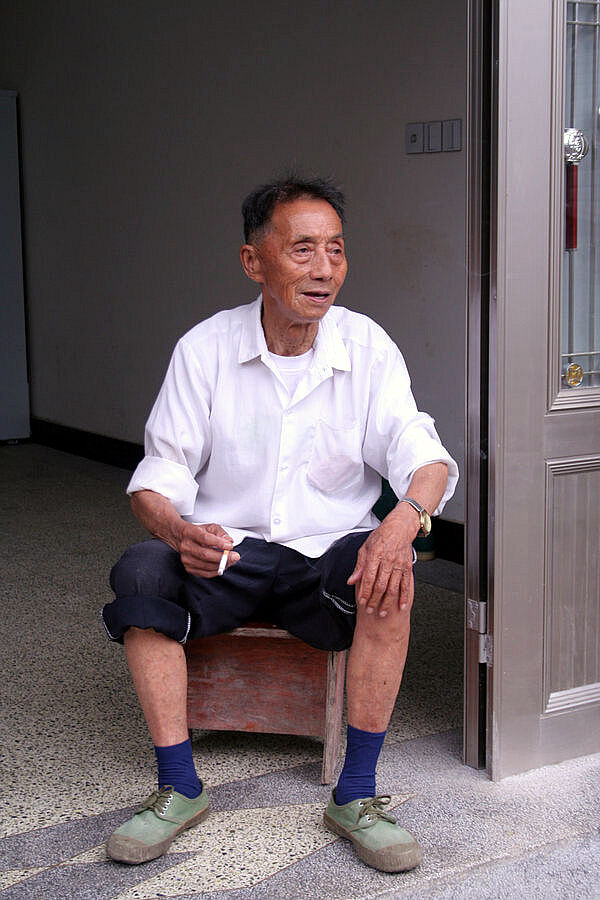 6月26日上午9时,当记者找到开化县音坑乡下明廉村建国前入党的老党员叶林根的大儿子家时,老叶正坐在儿子去年新建的三层小洋楼前,一边眯着眼睛吸烟,一边静静地等待着我们的到来。