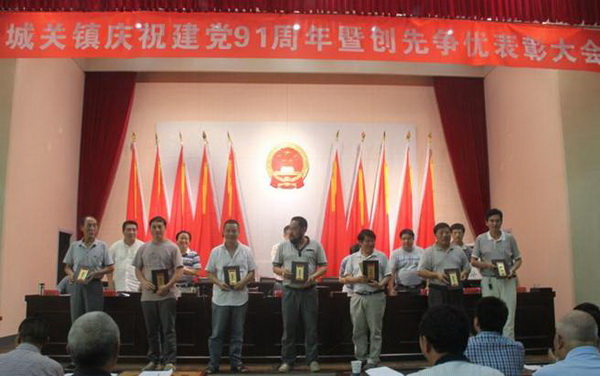 本次受表彰的共有10个先进党支部, 7名优秀村党支部书记, 30名优秀镇、村(居)干部, 60名优秀共产党员。镇党委政府号召全体共产党员和镇、村(居)干部要以受表彰的先进集体和个人为榜样,为推动城关经济社会又好又快发展做出新贡献,以优异成绩迎接党的十八大的胜利召开。