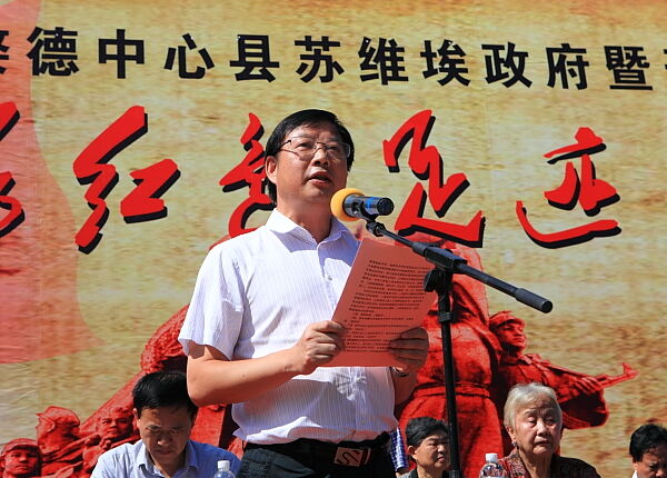 中共衢州市委副书记李剑飞代表中共衢州市委,向为创建和发展开化苏维埃政权作出重要贡献的红军老战士和革命老区人民致以崇高的敬意,向为开化革命事业英勇献身的先烈们表示深切缅怀,向长期以来,一直关心、支持开化革命老区和衢州建设发展的中央和省级部门,以及各兄弟市表示衷心的感谢!他指出,开化是浙江省著名的革命老区县,地处浙皖赣三省七县结合部,素有浙江“西部屏障”之称,战略地位显要,历来为兵家必争之地。独特的区位优势和开化人民的光荣革命传统,使新民主主义革命时期的开化党史在衢州党史乃至整个浙江党史中独放异彩。纪念化婺德中心县苏维埃政府暨开化一区苏维埃政府成立80周年,追忆苏维埃政权在开化创建发展的艰难历程,缅怀革命先辈的丰功伟绩,就是要学习他们坚定的共产主义理想信念和不怕困难、勇于牺牲的崇高精神,学习他们顾全大局、团结一心、无私奉献的崇高品德,弘扬他们的光荣革命传统,继承革命先烈的遗志,聚精会神搞建设,一心一意谋发展,不断把老一辈无产阶级革命家创造的革命伟业传承好、发扬好。