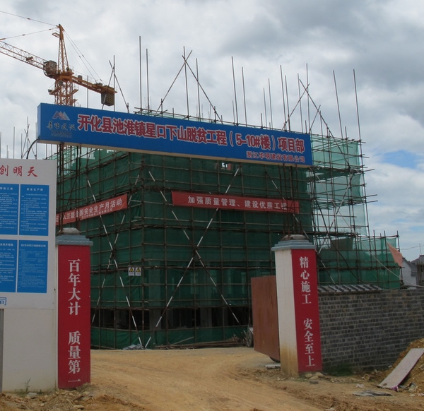 池淮镇下山脱贫小区建设工程是省特扶项目,也是开化县重点工程,总建筑面积为6.3万平方米,总投资8000万元以上,建成后可安置379户安置户。今年年初,该工程已经完成一期内5-10号楼建设工程招投标,土地平整也已经完成。目前该项目已完成水保、环评、可研、初设、立项、规划等工作。
