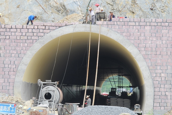 8月13日,记者在张湾乡境内看到,开化城关(独山)至江西(白沙关)省际公路改建工程正在有序推进中,施工人员正在枧坑畈隧道口进行洞门墙的砌筑作业,受地质影响而进度滞后的枧坑畈隧道即将全面完成。