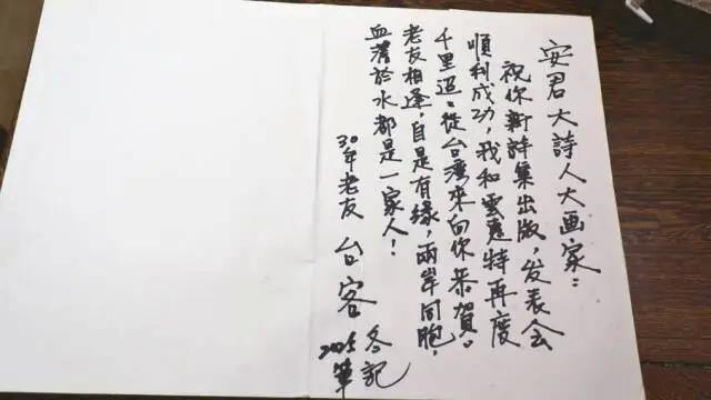 “安君,再次相逢于开化你的故乡,这种缘分是我们多年友谊的累积。因为你丰富的人脉,我们认识了很多真诚的朋友,也促进了两岸的交流,向你致谢……”2012年,第一次受邀来开化的台客在临别时给章安君写下了赠言。他说,自担任《葡萄园》诗刊主编20多年来,数十次往返于两岸之间,对促进两岸文化交流不遗余力。而对开化的认识与了解,始于章安君。“因为他,我跟钱江源头这座秀美的山城结下了不解之缘。”