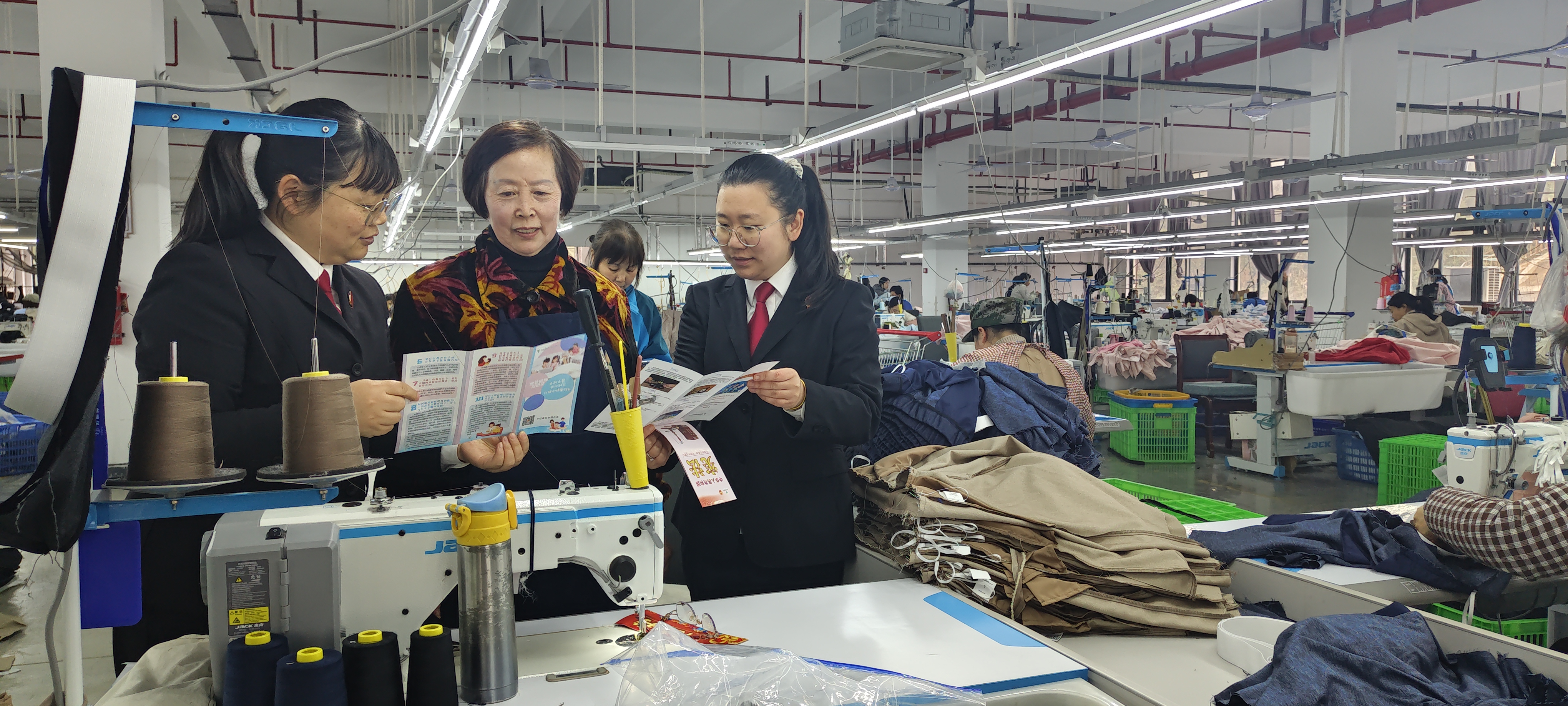 在开化大健康产业园的巾帼共富工坊内,机器轰鸣声中,女工们正熟练地操作着流水线,一旁的经纪人忙着予以指导,她们用勤劳的双手撑起共富“半边天”。在这群女性奋斗者中,既有带动邻里增收的经纪人,也有追赶幸福生活的务工者。慰问人员不仅为她们带来了慰问品,更依托司法局、人民法院等专业力量,在工位旁“见缝插针”地开展了简短实用的普法宣传,叮嘱大家在辛勤劳作的同时,务必保护好自身的劳动权益,让关爱从物质层面升华到了法治保障。