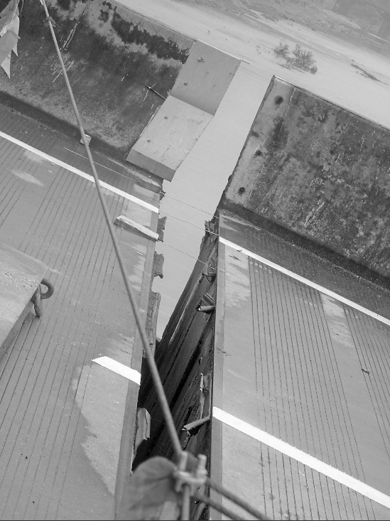 桥面中央连接处的裂缝,可以伸进一只脚。 |