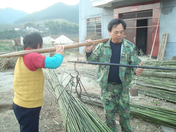 近日,开化县华埠镇郑家村的不少村民利用农闲时节纷纷上山砍苦竹卖给收购商。村民许水仙相告,每天砍苦竹多的时候有400多斤,少的时候也有200多斤,目前的收购价格是15元∕百斤。11月27日这天,她砍了248斤苦竹,卖得37.2元。“趁着农闲砍一季苦竹,也能增加近千元收入呢。”