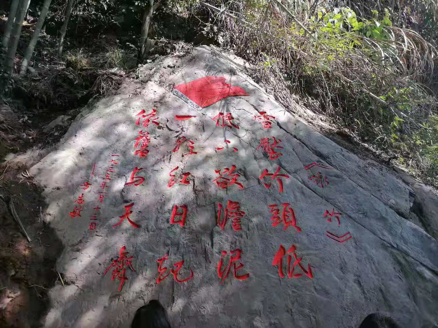 1935年1月12日,当时,因大雪封山,天寒地冻,方志敏等率领的中国工农红军红十军团北上抗日先遣队,在徐家村战役遭遇失利后,被迫转移,再次翻越被大雪封盖的南华山,大多数红军战士身穿单衣,脚穿草鞋,有的甚至还光着脚,在这冰天雪地的崇山峻岭中走着、爬着,战士们的信心跌到了底谷,觉得自己再也走不出这座雪山了,在穿过一片竹林时,方志敏看到一片被冰雪压弯了的翠竹依然挺风摇曳,便情不自禁吟诗一首,鼓舞战士树立战胜困难的信心的勇气。